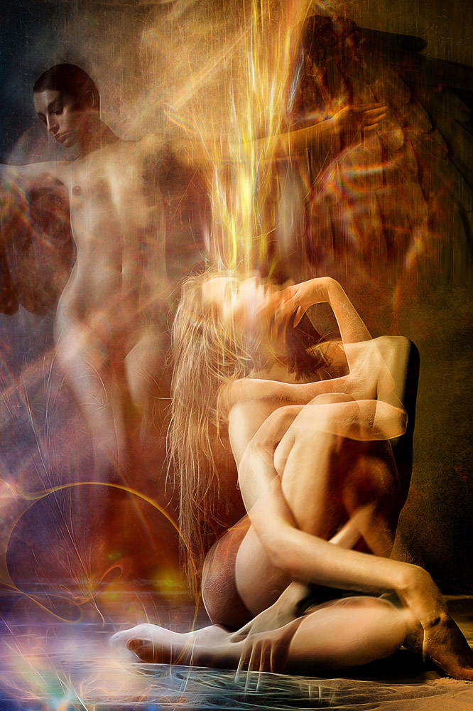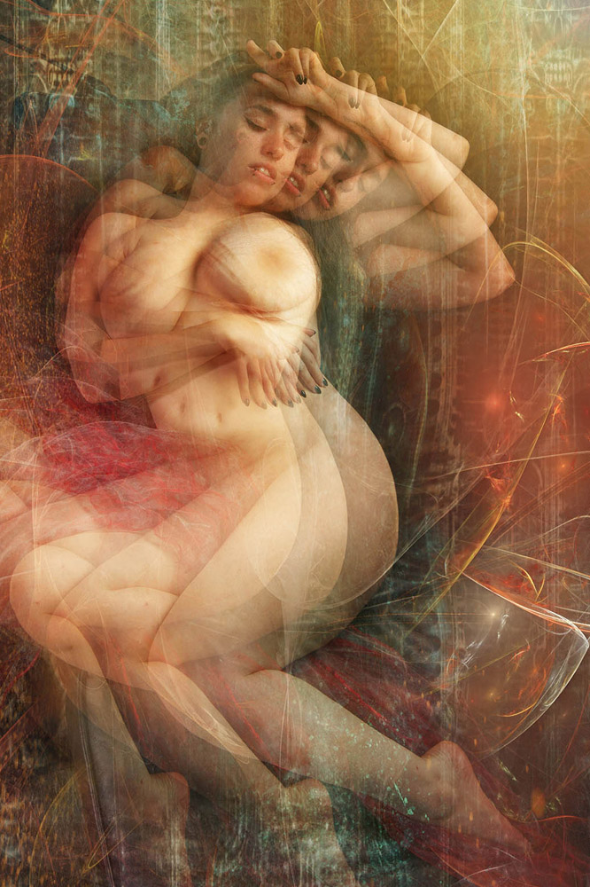Atmosphères. Effluves. Fantasmes d’union ou d’attente. Entre le corps de la femme et celui du voyeur l’écart est creusé. Mais le second ne finit jamais par renoncer. Chacun croit à sa réalité. En cela l’art est essentiel. Il fait de nous les dupes consentantes du non-dupe. Et chaque voyeur prend pour mystérieux le risque que la femme ouvre. Son amour pour elles reste éternel puisqu’il est contrarié. Le voyeur n’est pas nu : il est dépouillés. Par capillarité.